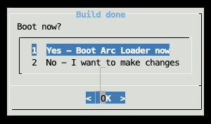 Sau khi Bootloader tạo xong, chọn Yes - Boot Arc Loader now