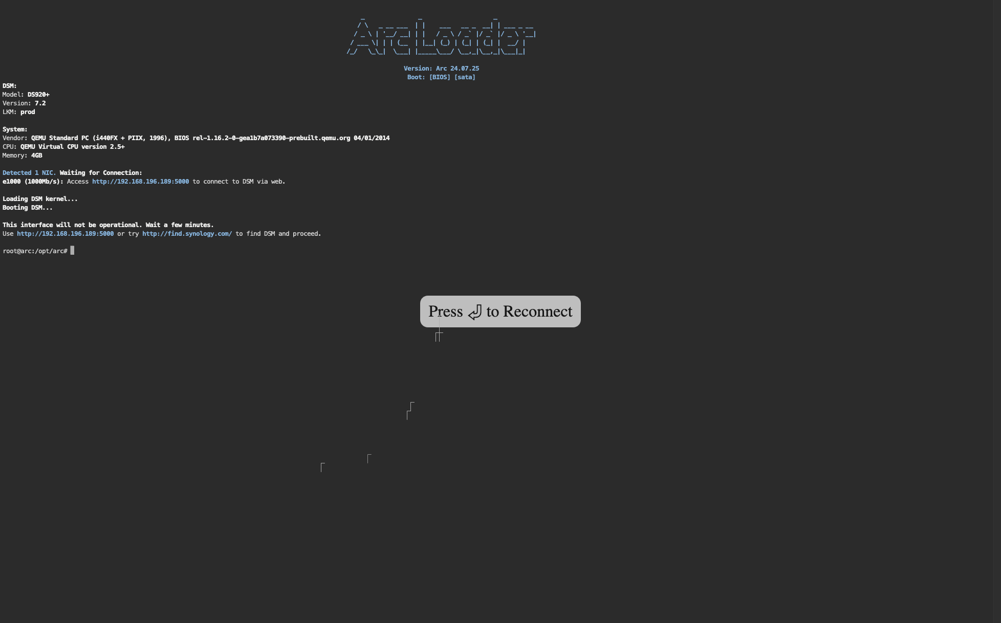 Chờ vài phút để máy chủ khởi động lại, sau đó truy cập vào địa chỉ http://<IP>:5000 để bắt đầu cài đặt DSM 7.2