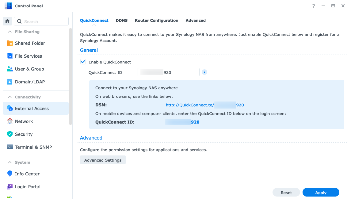 Khi sử dụng ARC Patch, mình có thể kết nối em Synology Fake này với tài khoản Synology, và dùng được luôn cả tính năng QuickConnect ID. Mọi người có thể thử xem sao nhé!