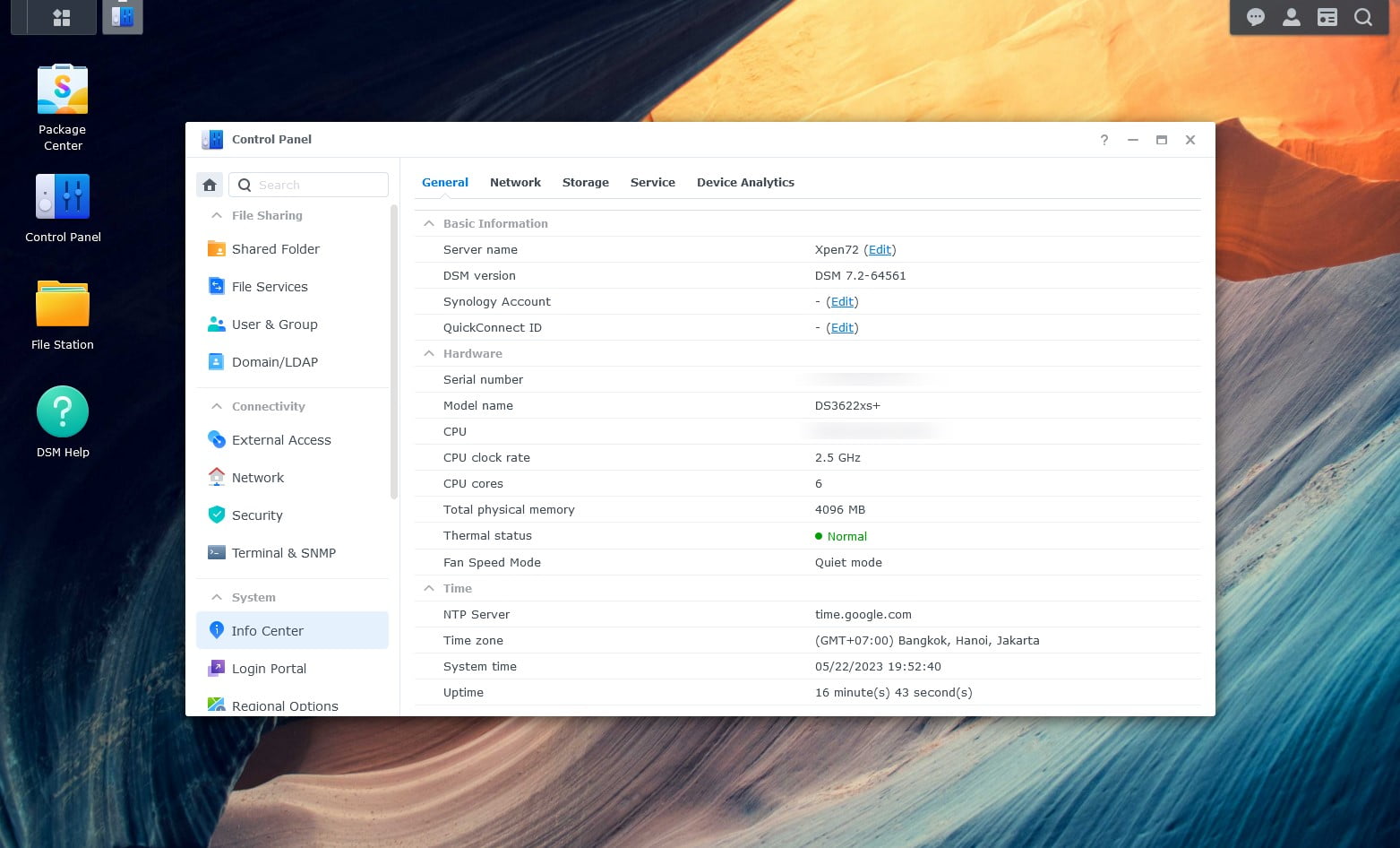 Và đây là DSM 7.2 sau khi cài đặt xong