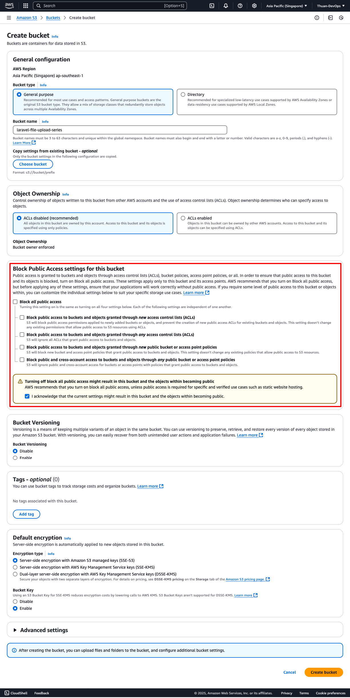 | Tên Bucket | laravel-file-upload-series |